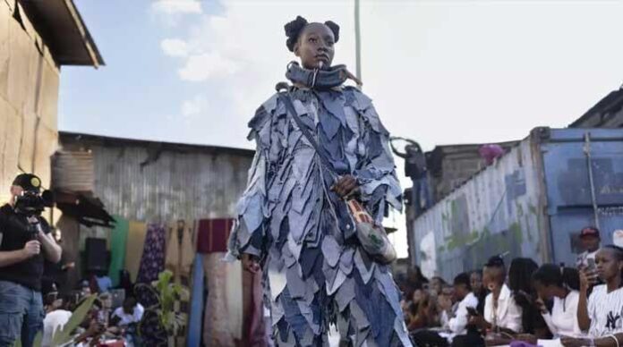 In a dusty alley in the heart of Kenya’s largest open-air market, fashion models strut down a makeshift runway in bold, upcycled outfits made from waste collected at dumpsites and market cast-offs — proof that even trash can dazzle.