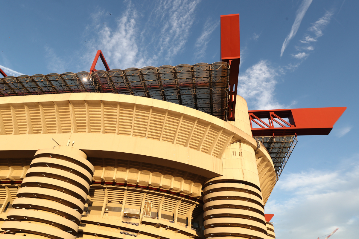 MILAN, ITALY – SEPTEMBER 14: Outside view of the stadium prior to the Serie A match between AC Milan and Bologna FC 1909 at Giuseppe Meazza Stadium on September 14, 2025 in Milan, Italy. (Photo by Marco Luzzani/Getty Images)